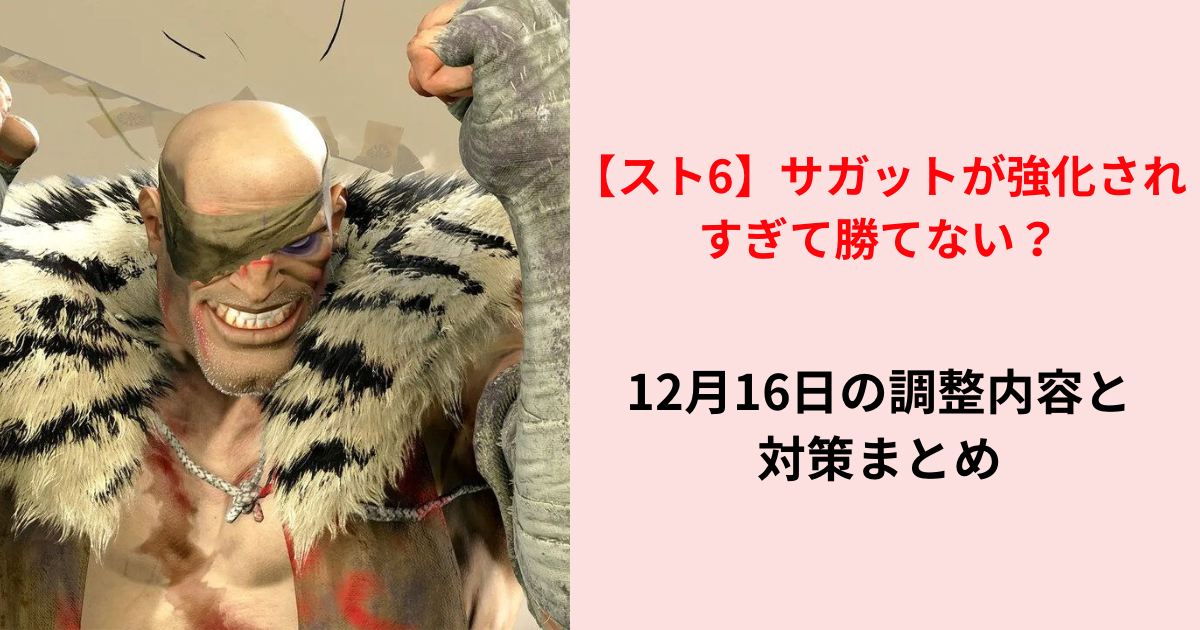 - 12/16のサガットは、下段の触りとタイガーネクサス周りが上方修正され、ガード側のドライブ負担も増えます。